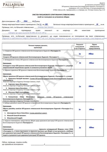 пИСЬМОВЕ Голосування НА ЗБОРАХ ЗА ДОПОМОГОЮ кеп