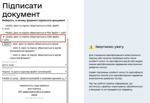 Обираєте підпис за допомогою електронного підпису та завантажуєте цифровий підпис, як Ви згенерували в Приватбанку.