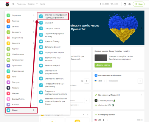 Отримати КЕП можливо в особистому кабінеті Праватбанк.
